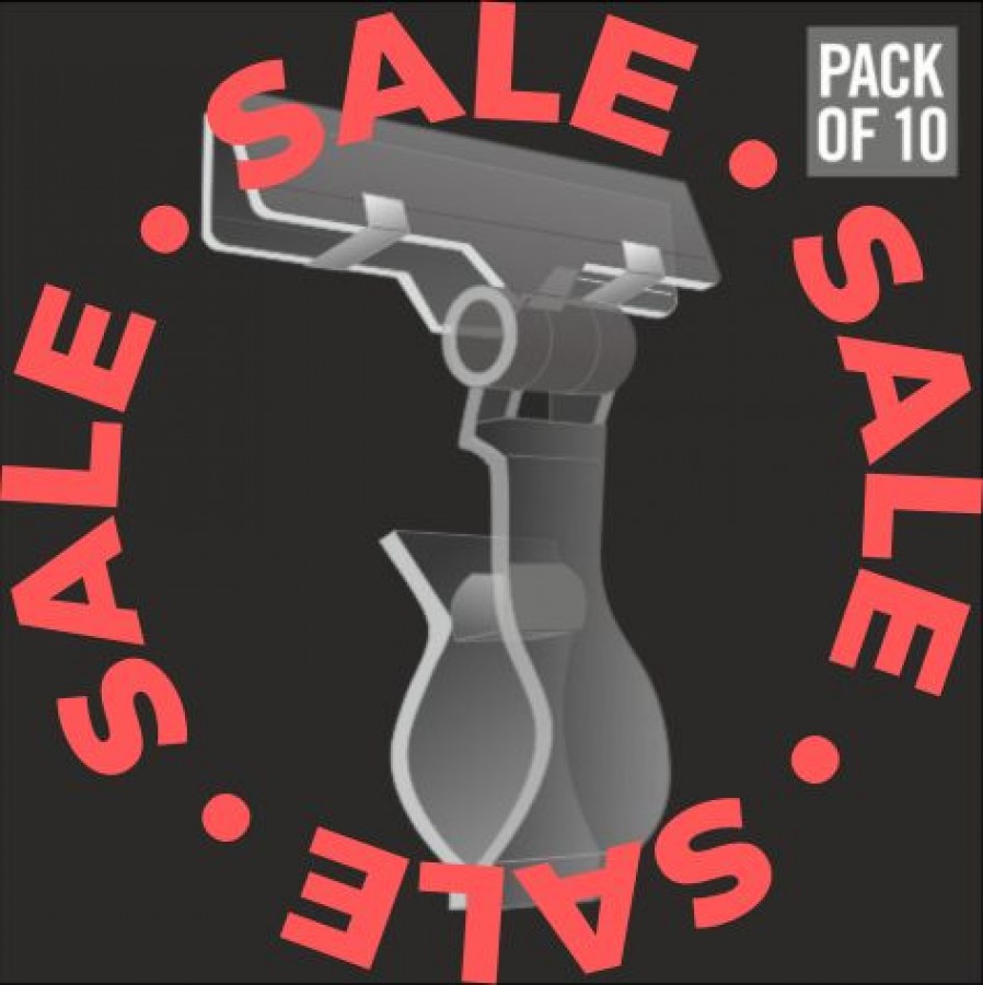 This injection moulded clip attaches a card or similar graphic to the edge of a surface such as the side of a tray, shelf or basket and is adjustable to your preferred angle.
