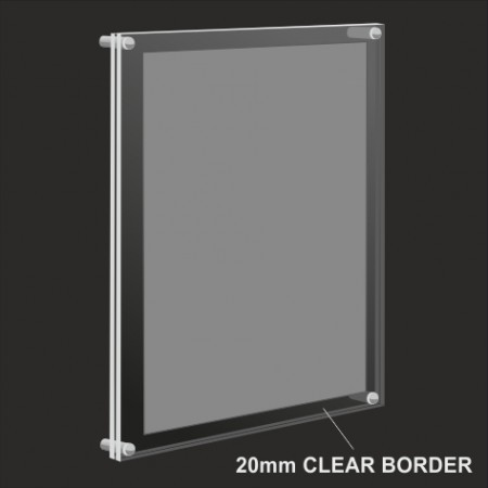 A Poster holder that comprises of two pieces of polished acrylic which are screwed to the wall on smart metal posts. Caps can be easily removed for accessibility. Larger sizes have six posts for added stability. Posts are 10mm diameter and hold the acrylic 20mm from the wall.